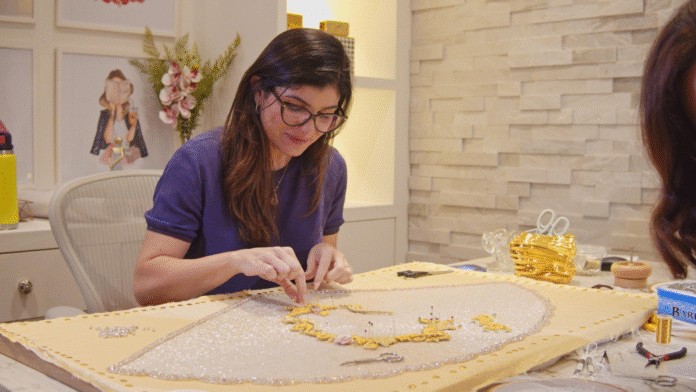 Segundo a estilista, a peça está praticamente pronta, restando apenas a aplicação de algumas joias. A concepção artística foi um pedido especial do casal coordenador e permanece em segredo até a data da apresentação. Inspirado no tema do Círio deste ano, “Maria, Mãe e Rainha de toda a criação”, o manto narra como Maria se revela como Mãe e Rainha, trazendo riqueza de detalhes em vidrilhos de cristal, joias de prata e ouro, zircônias, miçangas de vidro e hematitas.