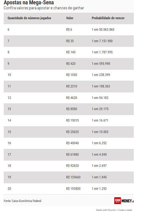 Para fazer uma aposta maior, com sete números, o preço sobe para R$ 35. A seguir, confira os valores para se jogar e probabilidades de ganhar a Mega-Sena: