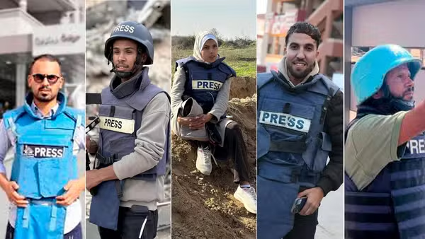Imagens gravadas de dentro e de fora do hospital Nasser, no sul de Gaza, registraram o momento em que um míssil israelense atinge profissionais de imprensa e resgate.