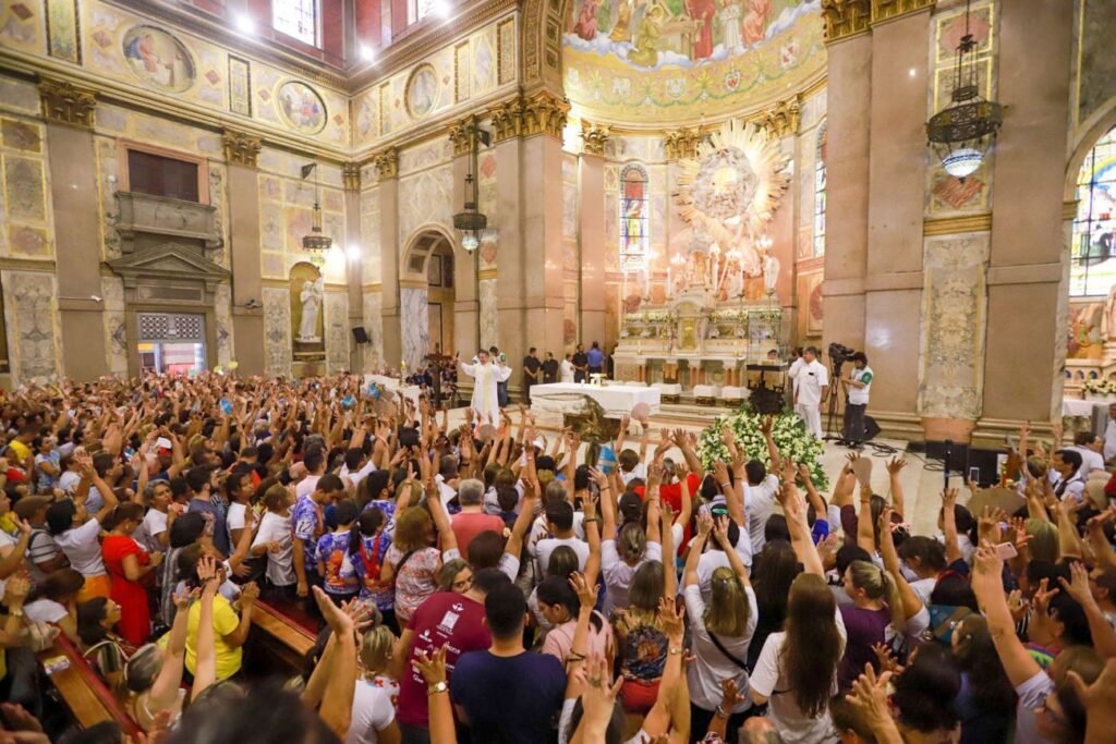 Sob aplausos, a Imagem Original foi colocada no Glória. Depois, todos caminharam para a Praça Santuário, onde ocorre neste momento a Missa do Recírio, presidida por Dom Júlio Akamine.