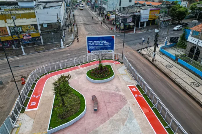 Quem transita pelas travessas Padre Eutíquio e São Pedro, no centro comercial de Belém, já pode acompanhar de perto os avanços da obra da Nova Tamandaré, uma das intervenções estruturais da COP 30 (Conferência Mundial sobre Mudança do Clima), para qual a capital paraense se prepara para ser a grande anfitriã em novembro de 2025. Com 72% de serviços executados, a Quadra I do Parque Linear da Nova Tamandaré está sem as divisórias (tapumes) e pode ser apreciada, agora, que o trecho também recebe nova pavimentação asfáltica.