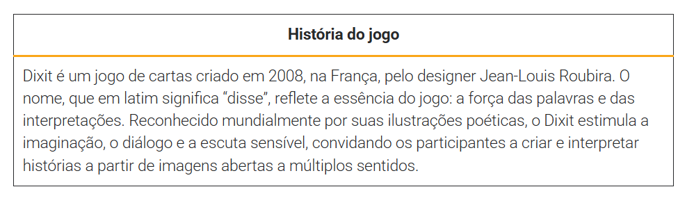 Para orientar o uso do jogo em sala de aula, o Instituto iungo desenvolveu o material ‘Cartadas Pedagógicas’, que traz sugestões de atividades que integram as cartas do Dixit Amazônias aos materiais e trilhas de aprendizagem do programa Itinerários Amazônicos. O recurso tem o objetivo de apoiar os professores na criação de situações de aprendizagem que estimulem a construção de narrativas, a colaboração e o protagonismo dos estudantes a partir de temas da região.