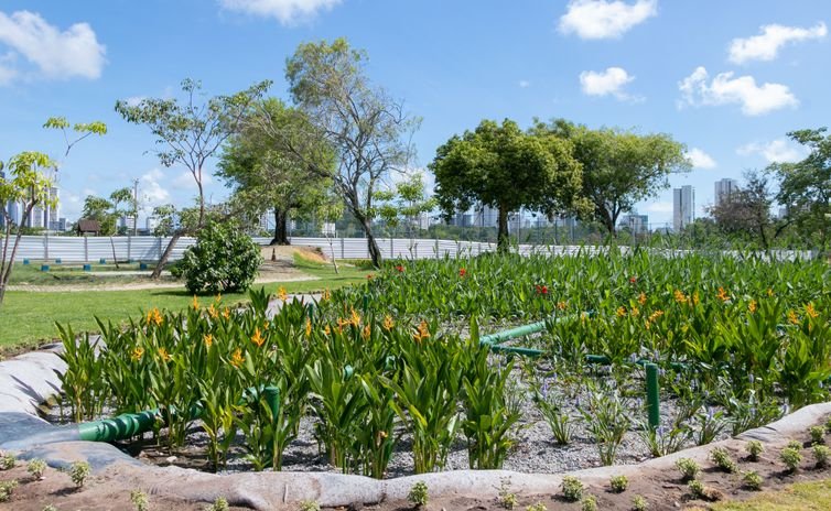 Outra iniciativa selecionada é desenvolvida no Recife e representa uma solução baseada na natureza. São os Jardins Filtrantes no Parque do Caiara.