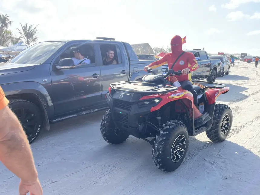 “O número de turistas e veranistas praticamente dobrou em comparação ao ano anterior. Estamos atuando de forma integrada com a Defesa Civil, Polícia Militar e Detran, tanto na prevenção de afogamentos e acidentes quanto no ordenamento dos veículos, devido ao avanço rápido da maré e à amplitude das ondas. São mais de 60 militares do Corpo de Bombeiros, além de agentes do Detran e da Polícia Militar, em um esforço conjunto para garantir a segurança de todos”, explicou o comandante do 13º Grupamento Bombeiro Militar, major Rodrigo do Vale.