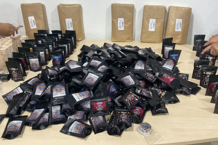 No imóvel alvo da busca e apreensão foram encontrados aproximadamente 270 cogumelos Psilocybe cubensis, conhecidos como “cogumelos mágicos”, que contêm substâncias psicoativas proibidas pela Anvisa a psilocibina e a psilocina. Além disso, a polícia apreendeu rótulos, embalagens, balança de precisão, seladora a vácuo e adesivos com a logomarca do suspeito.