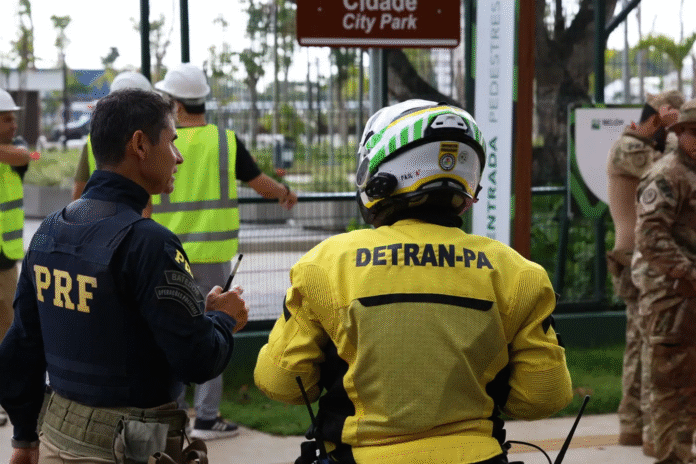 Cerca de 200 agentes de segurança pública foram mobilizados neste sábado (18) em uma simulação de escolta de autoridades em preparação para a Cúpula dos Líderes, que integra a programação da COP30, a ser sediada em Belém nos dias 6 e 7 de novembro.