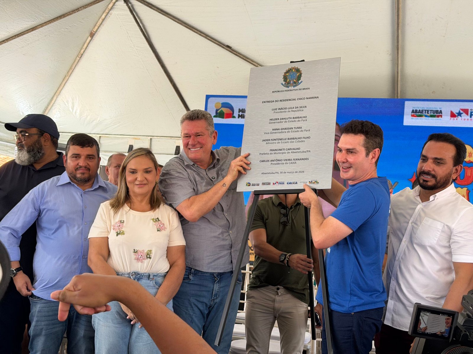 Na sequência da agenda, em Abaetetuba, Jader Filho e Keniston Braga participaram, ao lado da prefeita Francineti Carvalho, da entrega de 800 unidades habitacionais, reforçando a política de ampliação do acesso à moradia digna no estado.