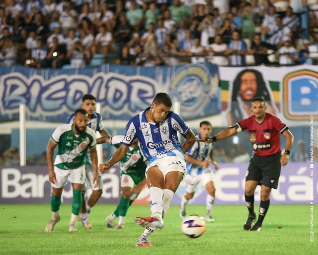 A resposta bicolor veio de forma consistente. O time manteve a pressão e alcançou o empate quando Kleiton Pego foi derrubado na área. O atacante assumiu a cobrança e deixou tudo igual, recolocando o Paysandu na partida.
