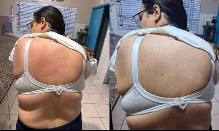 A reportagem apurou que, em grupos de WhatsApp e redes sociais locais, circulam amplamente duas versões de uma fotografia da secretária Gabriela, supostamente registradas logo após o incidente. Em uma delas, não se observa qualquer marca de agressão nas costas; na outra, divulgada de forma mais ampla, aparece uma marca avermelhada no local mencionado nos relatos. Até o momento, não houve acesso ao laudo do exame de corpo de delito, embora tenha sido informado que o procedimento foi realizado pelo próprio hospital municipal da cidade por profissional contratado pela suposta vítima.