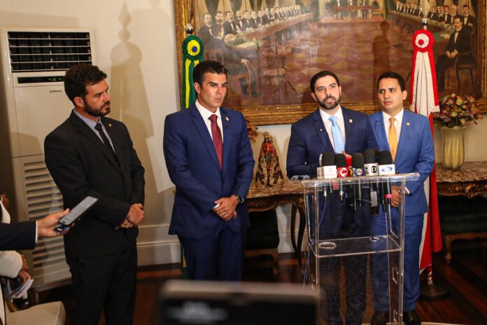 O prefeito de Belém, Igor Normando, destacou, no primeiro pronunciamento oficial como gestor municipal, as primeiras ações que serão realizadas na cidade. Ao lado governador Helder Barbalho e do vice-prefeito, Cássio Andrade, o gestor municipal anunciou as primeiras ações nas áreas de saneamento e limpeza de urbana, administrativa e sobre a COP 30.