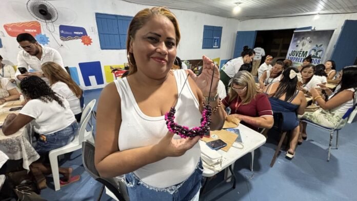 Diretora institucional do Instituto de Desenvolvimento Social e Produtivo da Amazônia (Idespa), Marcela Almeida coordenou a capacitação em biojoia, em que alunas produziram colares, pulseiras e embalagens, tudo feito com matéria sustentável, além das próprias logomarcas, por meio de inteligência artificial. “Este curso é completo, com noções de empreendedorismo para fazer um negócio de sucesso. A maioria das alunas é responsável pela renda da sua casa, então trazer autonomia e abrir o leque de possibilidades é sensacional”,