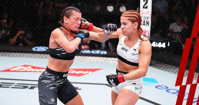 A paraense Rayanne dos Santos protagonizou uma verdadeira batalha no octógono, mas acabou derrotada pela romena Alice Ardelean no último sábado (31), em Las Vegas, em duelo válido pelo peso-palha (até 52 kg) do UFC. A brasileira perdeu por decisão unânime dos juízes (30-27, 29-28 e 29-28), acumulando a terceira derrota consecutiva na organização.
