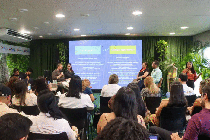 O painel “Oportunidades da Recuperação Produtiva de Reservas Legais: integrar conservação, produção e inclusão”, realizado na sexta-feira (14), na Sala Castanheira do Pavilhão Pará na COP30, reuniu especialistas, produtores e representantes de instituições públicas e privadas. A discussão apontou caminhos para transformar áreas degradadas em sistemas produtivos diversificados, ampliando renda, fortalecendo a agricultura familiar e recuperando a floresta.
