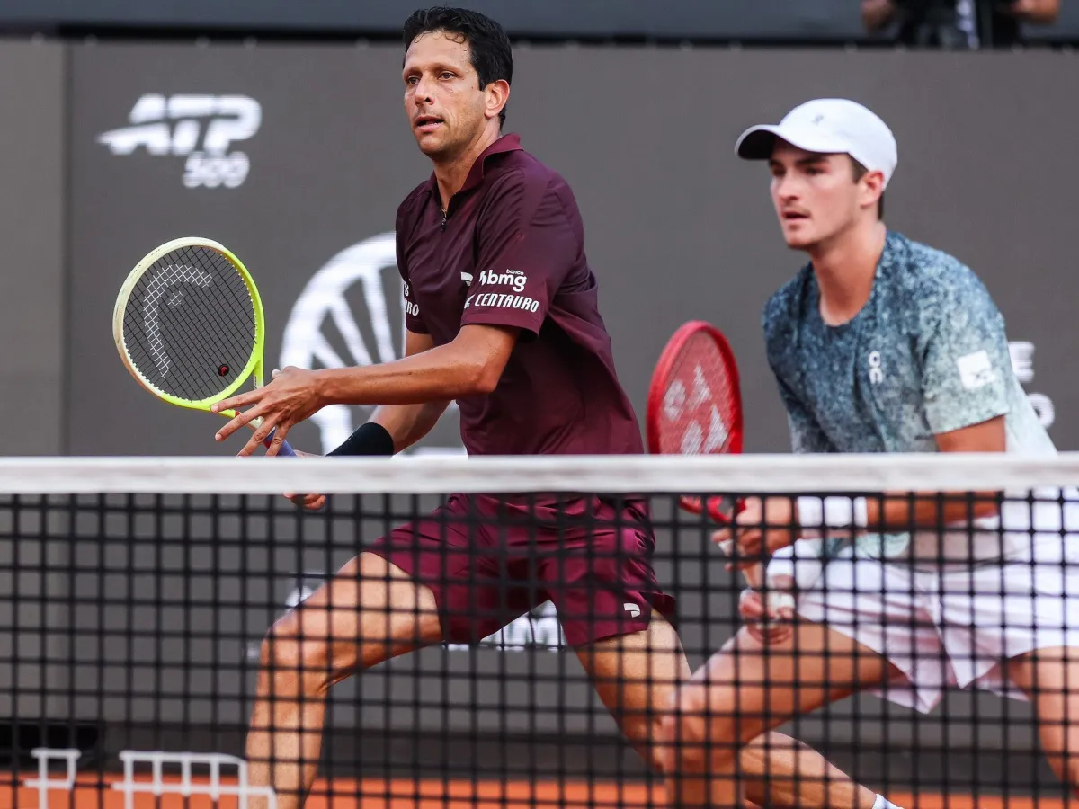 João Fonseca e Marcelo Melo venceram, neste sábado (21), a dupla alemã Mark Wallner e Jakob Schnaitter, por 2 sets a 1 e garantiram a final nas duplas do Rio Open 2026.