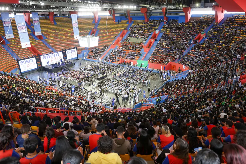 Mais de dez mil estudantes participaram, ontem, sexta-feira, 28, do maior “aulão” de reforço já promovido pela Secretaria de Estado de Educação (Seduc). A revisão final para o Exame Nacional do Ensino Médio (Enem) ocorreu no ginásio Mangueirinho, em Belém, e reuniu alunos de Belém, Ananindeua e Marituba, municípios que tiveram as datas das provas ajustadas em razão da realização da COP30.