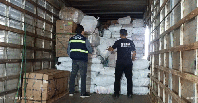 “O caminhão-baú, oriundo de Juazeiro do Norte (CE), com destino a Belém, Castanhal, Ananindeua (PA) e Macapá (AP) foi retido na barreira. Após o início de fiscalização e entrega dos documentos fiscais, os servidores perceberam que a carga era descrita como ‘chinelos e sandálias diversos, de forma genérica’, não contendo marca, tamanhos e modelos”, informou o coordenador da unidade fazendária, Gustavo Bozola.