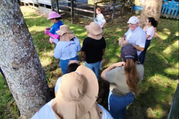 Visita técnica: a agenda contou ainda com uma visita à fazenda de Unidade de Produção Animal Álvaro Adolpho, que teve como finalidade promover o conhecimento prático e aprofundado sobre as atividades, tecnologias e metodologias aplicadas na produção animal sustentável, alinhadas às melhores práticas agropecuárias e aos princípios da bioeconomia. A ação integra as atividades do projeto Realiza Pará e busca aproximar os participantes das inovações tecnológicas e dos processos produtivos que vêm sendo desenvolvidos e aprimorados na unidade.