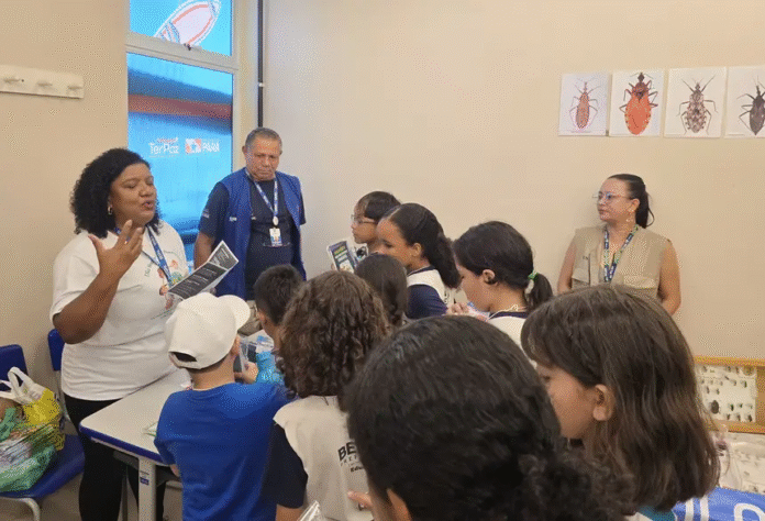 A Coordenação de Entomologia da Sespa, representada por Sonia Maria e Gilberto Barbosa, participaram da ação com uma demonstração interativa sobre a Doença de Chagas, em parceria com a Coordenação Estadual da Doençade Chagas. As crianças puderam observar o barbeiro, inseto transmissor da doença, por meio de microscópios materiais educativos. Segundo Eder Amaral, Coordenador Estadual da Doençs Chagas, esse contato direto facilita o aprendizado e fortalece a prevenção. “Ao entender como o barbeiro se comporta e onde pode estar presente, as crianças assimilam de forma prática a importância da prevenção e da segurança alimentar”, explicou.
