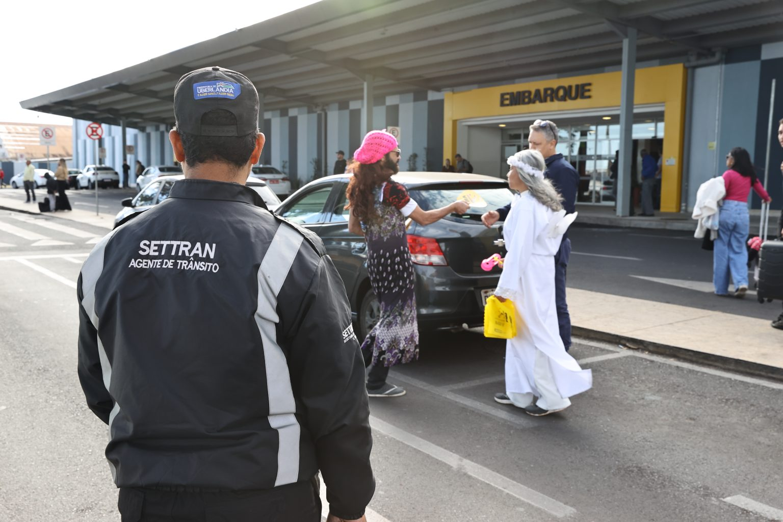 Com o objetivo de reforçar a importância da segurança no trânsito, a Prefeitura de Uberlândia, por meio da Secretaria de Trânsito e Transporte (Settran), promove, até a próxima semana, uma campanha educativa na praça José Alves dos Santos e na rua Salgado Filho, nas proximidades do Aeroporto Tenente-Coronel Aviador César Bombonato. A ação, idealizada pelo Núcleo de Educação para Mobilidade Urbana e Cidadania, conta com a distribuição de panfletos informativos e uma abordagem teatral com motoristas, chamando a atenção para o respeito às leis de trânsito, especialmente em áreas de grande fluxo de veículos e pedestres.