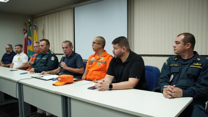 A coletiva também reuniu representantes de diversas instituições que compõem a força-tarefa: Nélio Aguiar, secretário regional de Governo do Estado do Pará; Sidmar Oliveira, inspetor chefe da PRF; Capitão de Fragata Charles Amorim, comandante da Marinha do Brasil em Santarém; Coronel Celso Piquet, comandante do 4° Grupamento de Bombeiros Militar; Coronel Tarcísio Moraes, comandante do Comando de Policiamento Regional I da Polícia Militar; Ediney Pimentel, diretor regional do Detran-PA em Santarém; delegado Kleidson Castro, representando a Polícia Civil; e Darlisson Maia, coordenador da Defesa Civil Municipal.