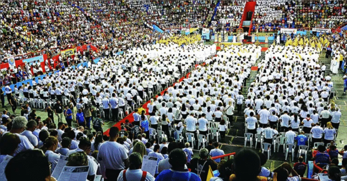 Na última quinta-feira (19), a Arquidiocese de Belém realizou a Solenidade de Corpus Christi na Arena Guilherme Paraense, o Mangueirinho. O evento reuniu fiéis de 109 paróquias, além de pastorais, movimentos, grupos e todo o clero da Arquidiocese, em uma manhã de celebração, adoração e renovação da fé.