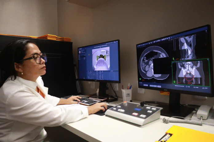 O físico médico Francisco Sampaio explica que a tecnologia oferece alta precisão na aplicação da dose de radiação, poupando órgãos saudáveis e reduzindo efeitos colaterais. “Antes de cada sessão, o aparelho realiza imagens para garantir que a radiação será direcionada exatamente à lesão, poupando os órgãos sadios e diminuindo a toxicidade do tratamento”, destaca.