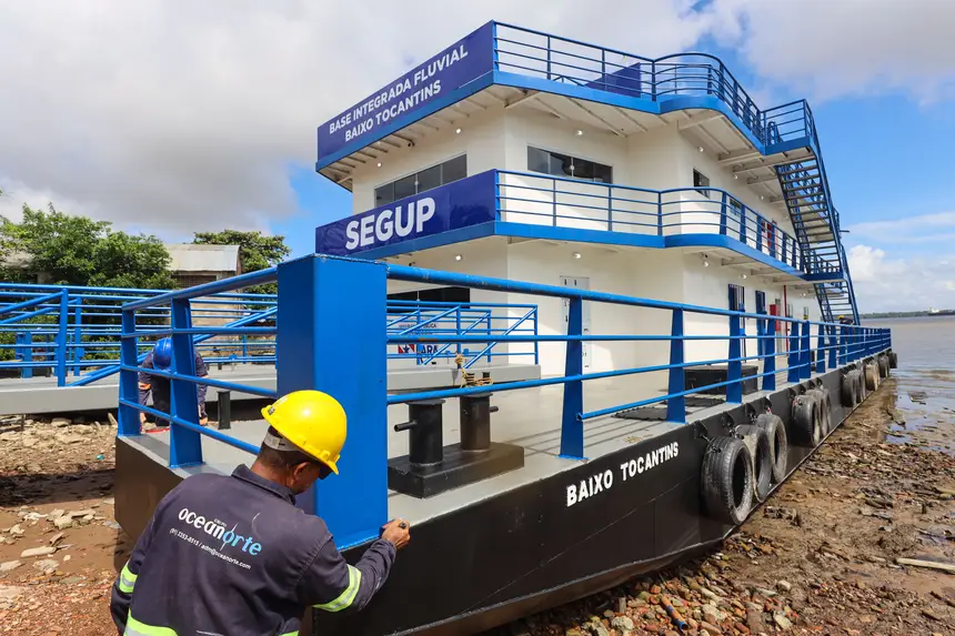 A Base “Baixo Tocantins” é a terceira Base Fluvial Integrada de Segurança Pública do Estado e será destinada ao município de Abaetetuba, com objetivo de fortalecer ainda mais as ações de segurança nos rios do Pará. Executada pelo Governo do Estado, por meio da Secretaria de Segurança Pública e Defesa Social (Segup), a mais nova Base já apresenta 100% da obra naval concluída, seguindo para finalização da identidade visual e construção da frente civil, no Furo do Capim, onde em breve será instalada, atendendo a estratégia principal de fiscalizar e controlar o fluxo de embarcações que trafegam nas proximidades da região do Baixo Tocantins.