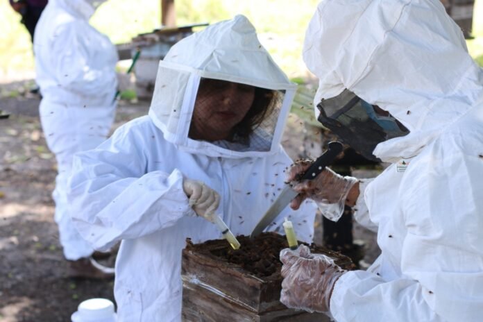 As atividades integram o Programa de Educação Socioambiental (PES) da empresa e atende, atualmente, 25 famílias com capacitações para a criação de abelhas sem ferrão. Para Renan, o projeto contribui com o crescimento econômico da região. “A atividade é de suma importância, agregando na renda das famílias e preservando o meio ambiente. Aprendi o manejo racional de abelhas sem ferrão, como coletar e beneficiar os produtos gerados a partir delas, como mel, própolis e pólen. Também aprendi sobre a importância delas para o ecossistema como um todo e para o mundo”, afirmou o produtor, ressaltando que, graças à atividade, houve uma melhora na renda da família.