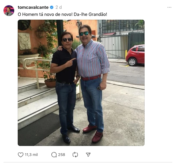 Tom Cavalcante revelou que encontrou o apresentador Faustão. A foto foi divulgada na rede social Threads.