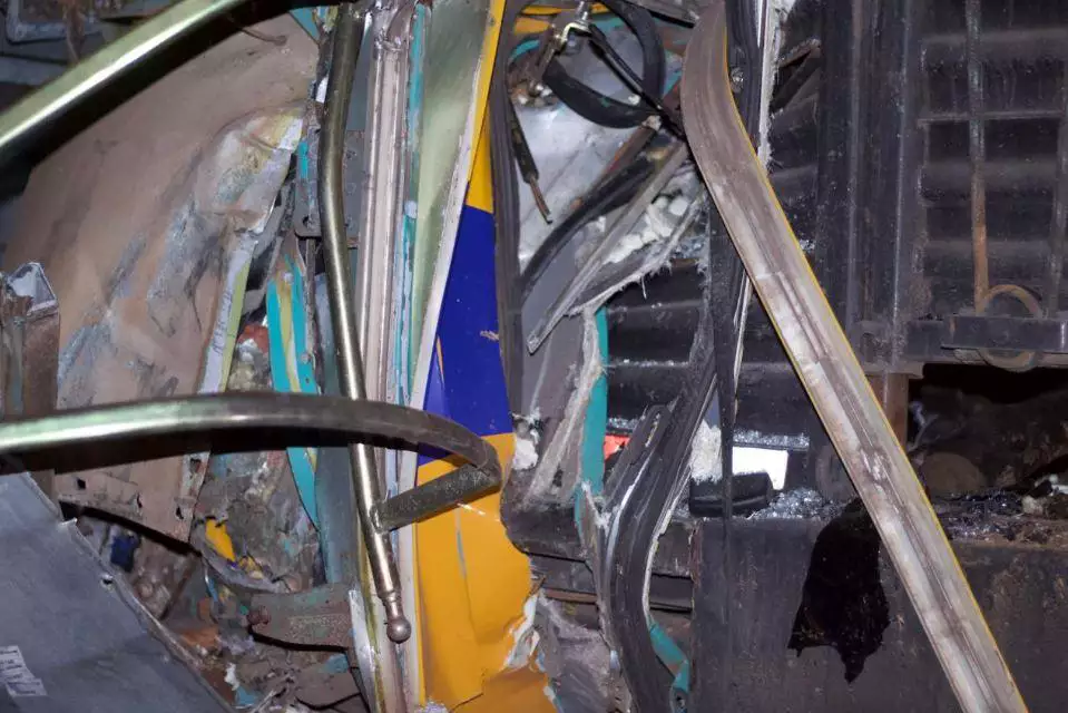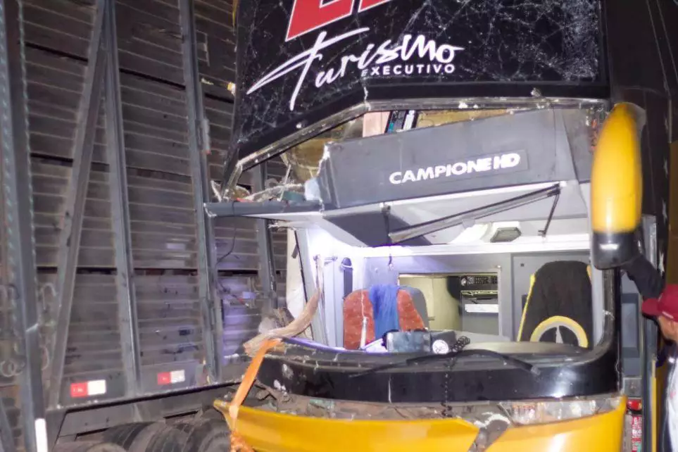 - O impacto atinge principalmente a parte frontal do ônibus.