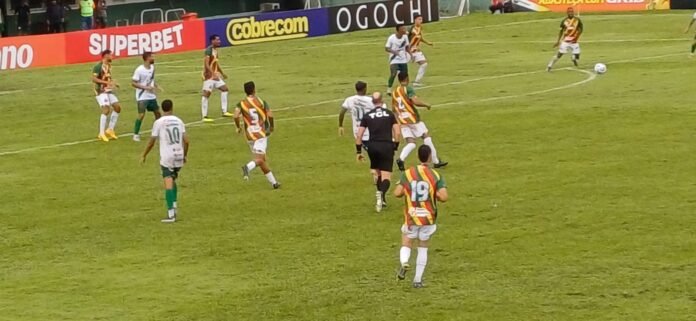 O Sampaio Corrêa entrou dominando no gramado do Souza. A Tuna, entretanto, aguerrida, atacava em busca do gol. No entanto, a equipe não conseguia finalizações e, muitas vezes, parecia perdida em campo.