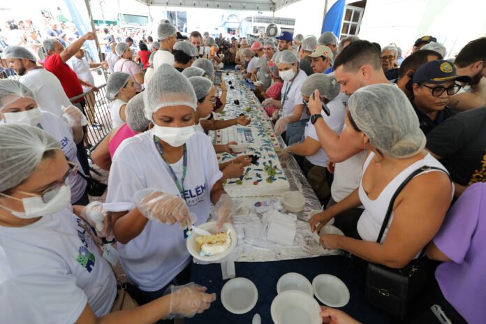 Durante a programação, centenas de pessoas saborearam o bolo gigante de cupuaçu com doce de leite. Foram cerca de seis metros do doce que atraiu gente como a dona de casa Maria Fagundes, de 64 anos, que saiu cedo do bairro do Paar, em Ananindeua, para garantir uma fatia. “Eu tô achando muito bom, esse ano tá bem organizado. Porque todos os anos eu tô aqui. Só ano passado que não vim, mas esse ano tá bem legal”, avaliou.