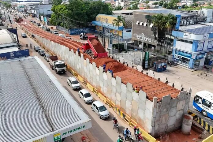 Com 40% concluído e previsão de entrega para maio de 2025, o viaduto vai medir 350 m de comprimento e 14 m de largura. Terá mão dupla, possibilitando que o tráfego na Mário Covas seja livre para quem seguir no sentido Augusto Montenegro ou BR-316. Quem estiver na Av. Independência também poderá seguir livre por baixo do viaduto.