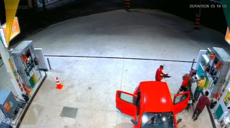 De acordo com informações preliminares, criminosos abordaram um motociclista que estava abastecendo no local e anunciaram o assalto. A vítima foi rendida durante a ação.