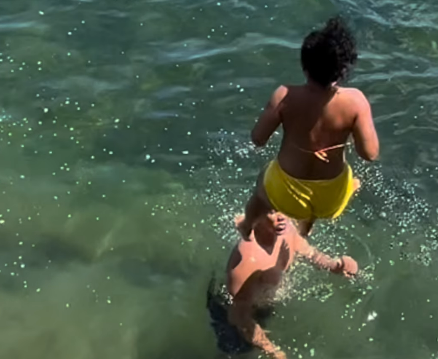 No entanto, o que deveria ser um mergulho comum transformou-se em um “atropelamento” aquático. No exato momento em que a jovem ganhou impulso e saltou, um rapaz que já estava na água posicionou-se involuntariamente abaixo da trajetória da queda. Sem tempo para desviar, ela acabou caindo diretamente sobre os ombros e a cabeça do banhista, fazendo com que ambos submergissem imediatamente após o forte impacto.