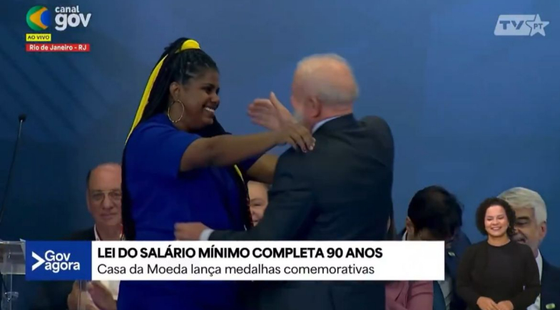 Quebra de protocolo marcou a celebração dos 90 anos da Lei do Salário Mínimo; governo lançou medalha comemorativa.