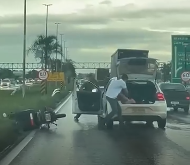 Motoristas que passavam pela rodovia ficaram assustados com a situação. Testemunhas relataram que o condutor do carro já estaria perseguindo o motociclista antes do início da confusão.