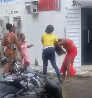 Mesmo sob chuva, a confusão ocorreu em via pública e gerou aglomeração de curiosos. Segundo relatos, o confronto envolveu duas mulheres contra outras três.