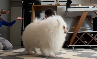 Enquanto a mamãe chamava a menina com empolgação, o cachorrinho da família, Dobby, decidiu tomar o protagonismo para si e simplesmente invadiu a filmagem. Com poses que lembravam aulas de yoga, o doguinho roubou a cena e arrancou gargalhadas de quem assistiu ao vídeo.
