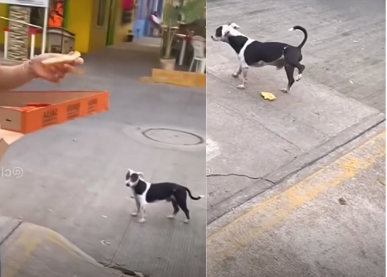 No vídeo, uma mulher aparece comendo tranquilamente quando decide dividir um pedaço de pizza com um cachorrinho que a observava atentamente. O momento parecia fofo, mas tomou um rumo totalmente inesperado.
