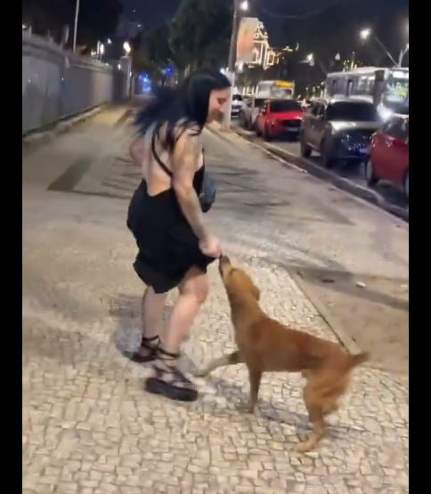 A filmagem mostra o cãozinho mordendo firmemente a barra do vestido da moça e fazendo força, enquanto ela tenta seguir em frente. O momento de pura insistência canina viralizou rapidamente após ser publicado pelo perfil do Instagram PetFlix, arrancando risadas e comentários dos internautas sobre a natureza brincalhona e inesperada dos vira-latas caramelo.