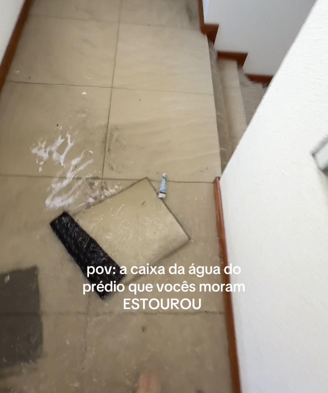 Moradores de um condomínio no bairro Barreiros, em São José (SC), viveram momentos de tensão e correria. O rompimento de uma caixa d’água na estrutura do edifício provocou um alagamento interno de grandes proporções, transformando escadarias e corredores em verdadeiras “cachoeiras”.