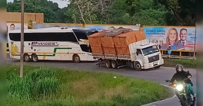 Um caminhão carregado de tijolos quase tombou no Viaduto do Coqueiro, na rodovia BR-316, em Ananindeua, na manhã desta quinta-feira (22). O incidente, ocorrido em um dos acessos estratégicos da Região Metropolitana de Belém, causou grande lentidão e deixou motoristas apreensivos.
