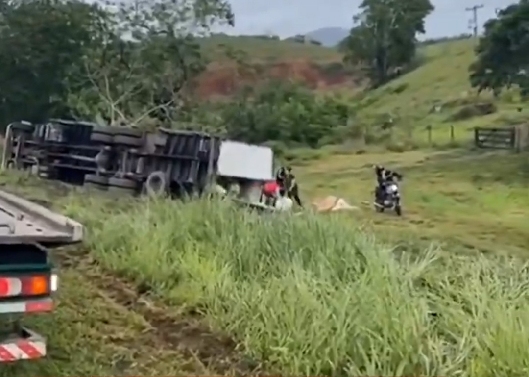 Um caminhão que transportava produtos do Mercado Livre tombou na segunda-feira (20) na BR-101, em Itapemirim (ES), próximo ao posto Luanda. Em vez de socorro, o motorista, que por sorte não se feriu gravemente, presenciou sua carga ser saqueada por populares.