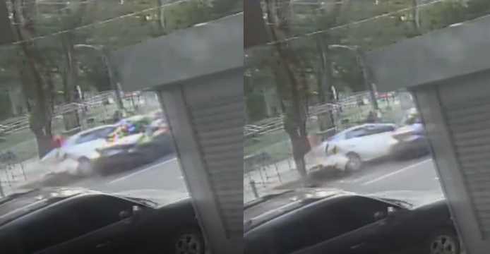 Nos vídeos, é possível ver quando um carro em alta velocidade perde o controle e atinge, em sequência, carros e motocicletas que estavam estacionados ao longo da via, nas proximidades da Praça da República.