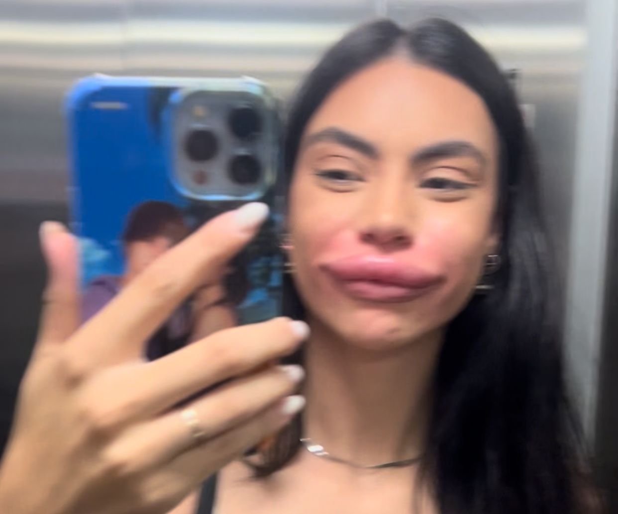 A influenciadora mostrou a reversão de um preenchimento labial e divertiu internautas com o efeito temporário da hialuronidase.