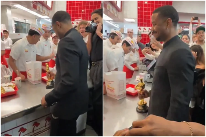 Enquanto muitos astros de Hollywood seguiram para as exclusivas festas pós-Oscar regadas a champanhe e caviar, o grande vencedor da noite de domingo (15), Michael B. Jordan, decidiu encerrar sua noite histórica de uma forma muito mais “pé no chão”. O novo Melhor Ator da Academia foi visto em uma rede de fast food, segurando sua estatueta dourada enquanto aguardava seu pedido.
