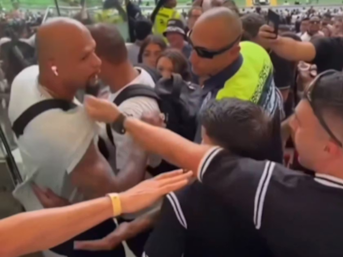Em meio ao tumulto, sobraram xingamentos e até uma tentativa de agressão física contra o comentarista. Imagens mostram que Felipe Melo chegou a ser segurado com força pela camisa por um dos presentes, enquanto outros torcedores tentavam se aproximar de forma agressiva.