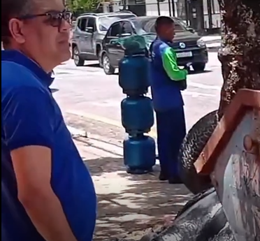 Nas imagens, um entregador de gás aparece na calçada, ao lado de botijões empilhados, enquanto observa a própria moto sendo levada junto com as demais.