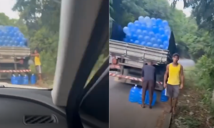 De acordo com as informações, os trabalhadores escondiam galões de 20 litros de água em uma área de mata ao longo da rota de entrega. Posteriormente, retornavam ao local com um caminhão para recolher o material e realizar a revenda ilegal.